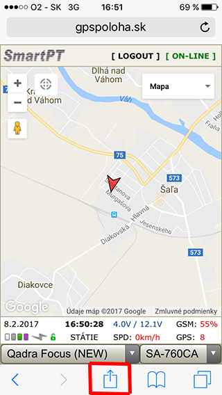 Naši zákazníci sledujú vozidlá prostredníctvom mobilného telefónu. Na rozdiel od ostatných firiem nepoužívame rôzne aplikácie pre rôzne značky mobilných telefónov, ale vytvorili sme špeciálne mobilné rozhranie pre všetkých. Táto technológia sa nazýva PWA - progresive web application a má zaručenú podporu do budúcnosti ako od iOS tak od ANDROID. Výhodou je vždy aktuálna verzia vo Vašom telefóne, ale aj rýchla odozva a jednoduché používanie. Kedže tieto aplikácie niesú dostupné na stiahnutie v obchodoch a aplikáciami, prinášame Vám tento jednoduchý návod na jej inštaláciu.