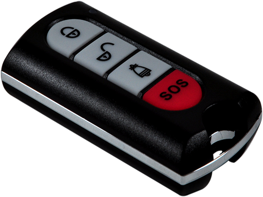Napájany dvoma batériami typu CR pre 3 roky prevádzky. Dosah diaľkového ovládania je až 15 metrov od vozidla.